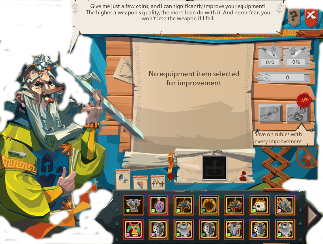 Il permet d'améliorer l'équipement que vous avez mis sur votre commandant ou sur votre bailli, mais, munissez vous de beaucoup de pièces, c'est assez cher, et ça ne marche pas à tout les coups, le taux de réussite diminue à chaque fois que vous forgerez un de vos objet.